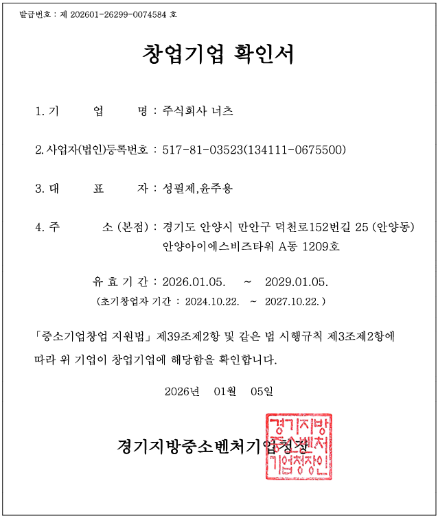 법인 설립부터 현재까지의 주요 성과와 인증 내역을 확인하실 수 있습니다.